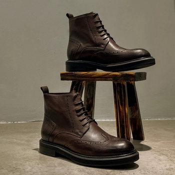 2025 Новая модная британская ретро кожаная обувь высокие рабочие сапоги из воловьей кожи Натуральная кожа ботинки ручной работы мужские мотоциклетные ботинки